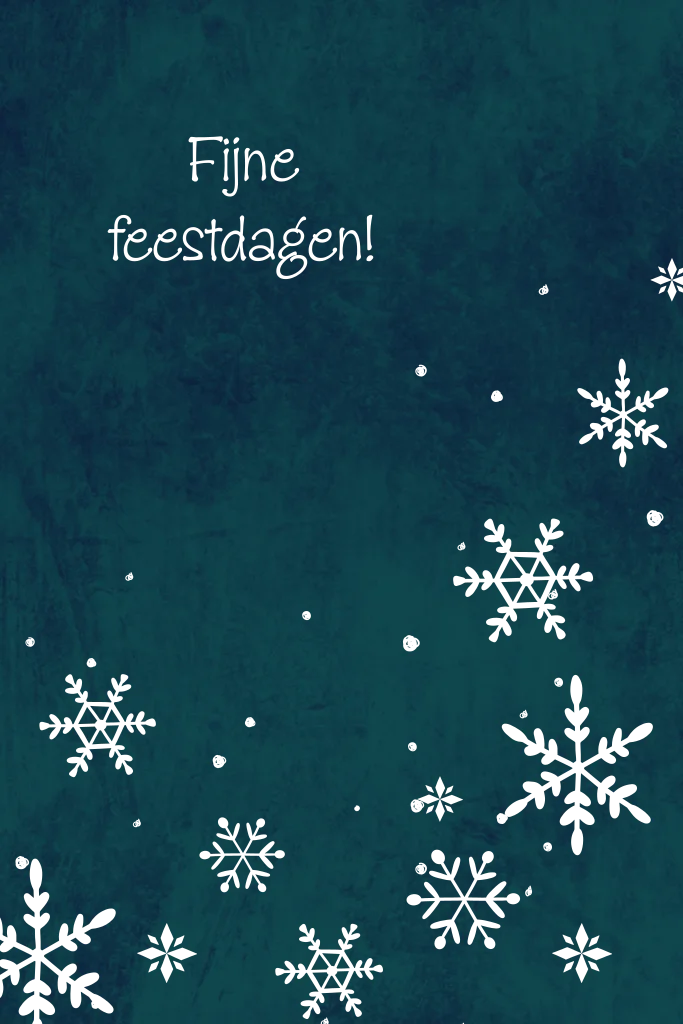 Kaartje in het blauw en groen met letters goudfolie. Fijne feestdagen.