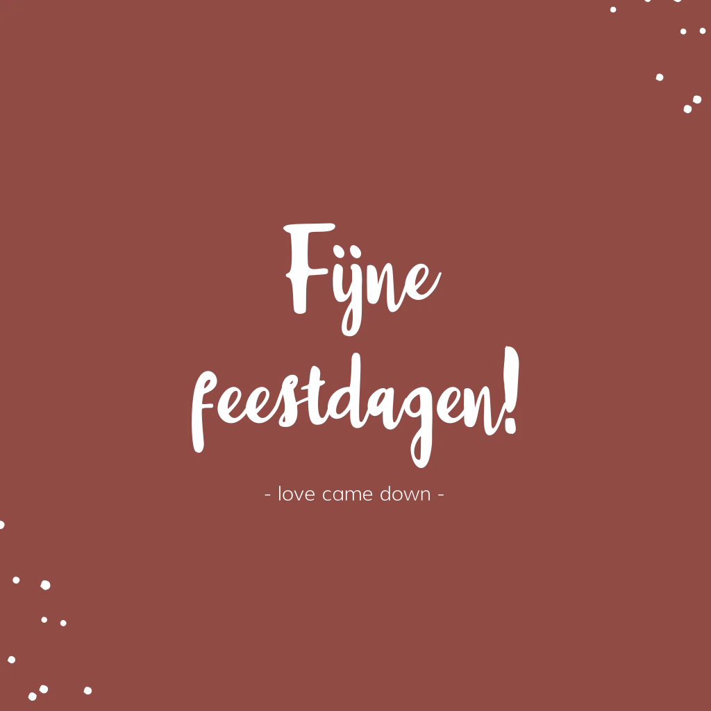 Deze kerstkaart met rood bruine achtergrond en stipjes en tekst in goudfolie kun je zelf helemaal aanpassen naar wens. Je kunt ook voor koperfolie of zilverfolie gaan. Ook fijn als zakelijke kerstkaart.