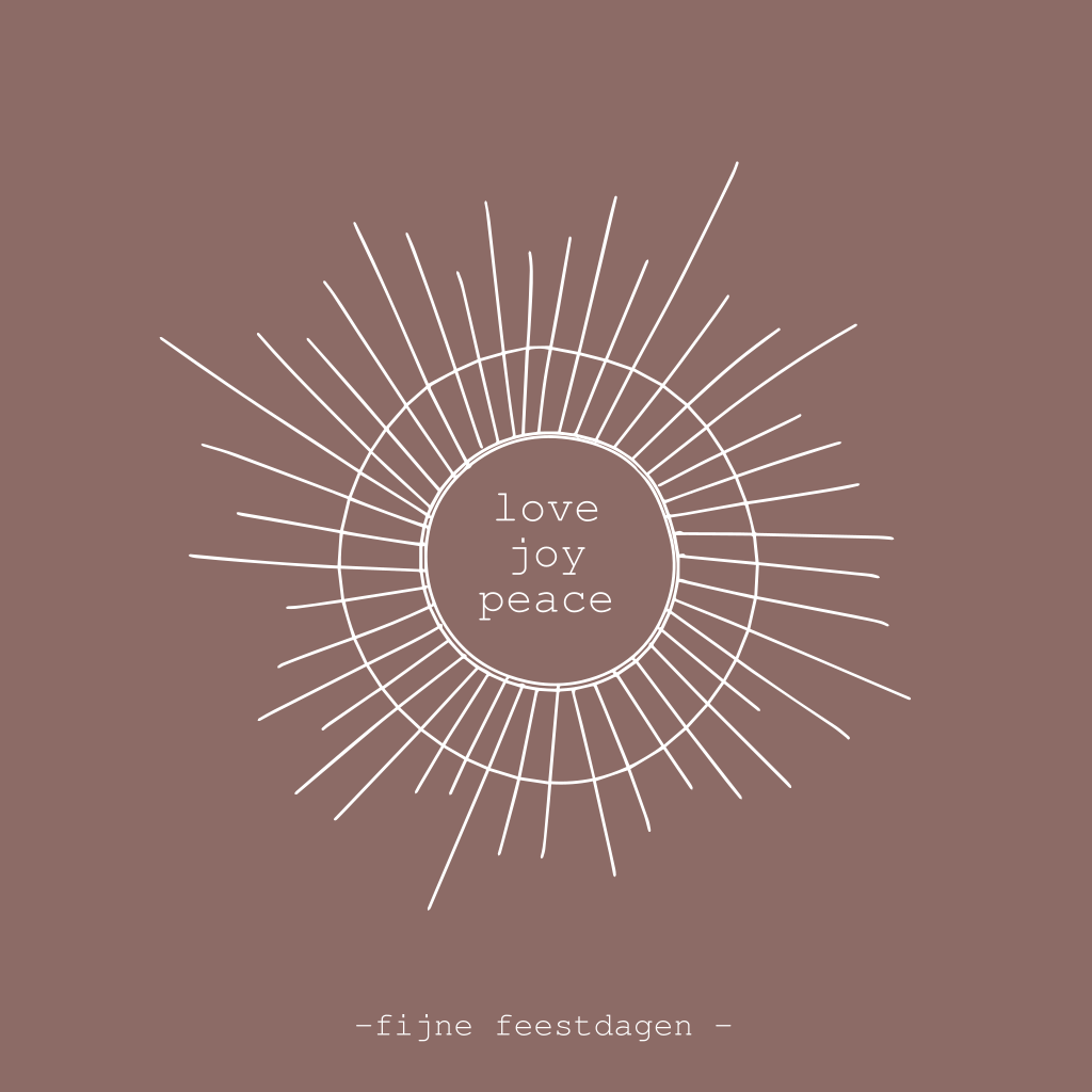 Kerstkaart met zon en goudfolie en roestbruine achtergrond