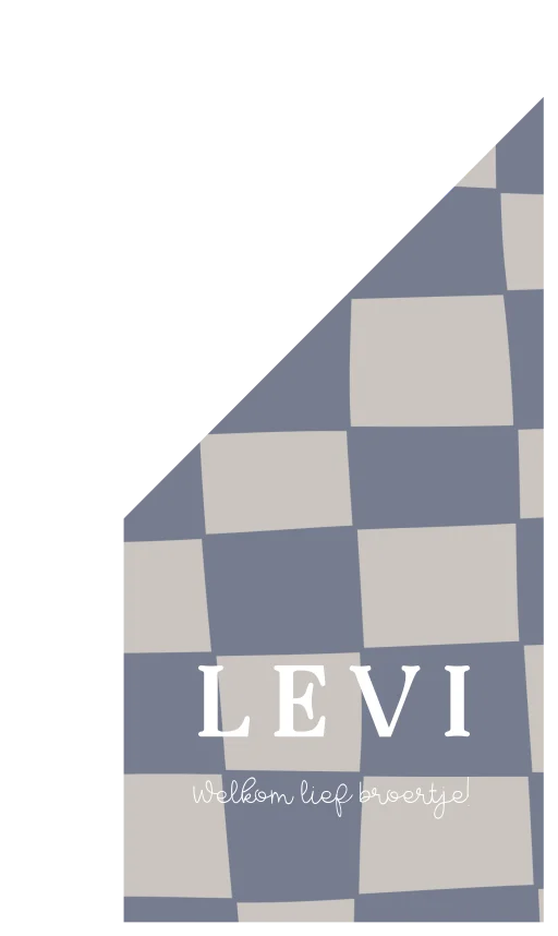 Geboortevlag om aan de hele buurt te laten zien dat jullie baby is geboren. Passend bij het kaartje Levi. Deze vlag is geschikt voor zowel jongens als meisjes. De kleur en blokjes kun je aanpassen in andere kleuren. Ook het lettertype en het maantje zijn aan te passen in de editor.