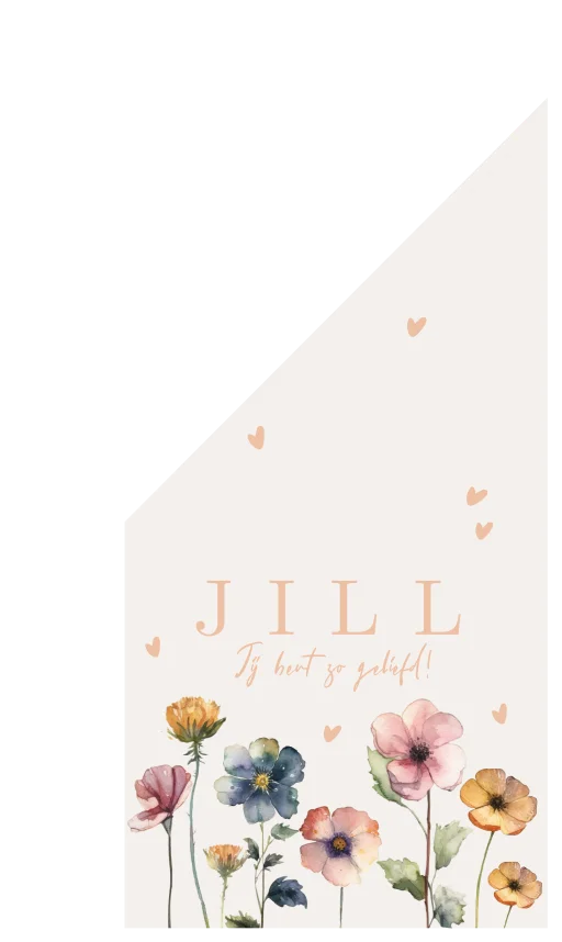 Met deze prachtige kleurrijke geboortevlag kun je de hele buurt laten zien dat jullie dochtertje geboren is. Het ontwerp van de geboortevlag komt van het geboorte kaartje Jill.