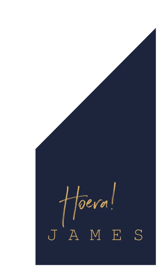 De donkerblauwe kleur en gouden letters kun je helemaal zelf aanpassen naar eigen wens