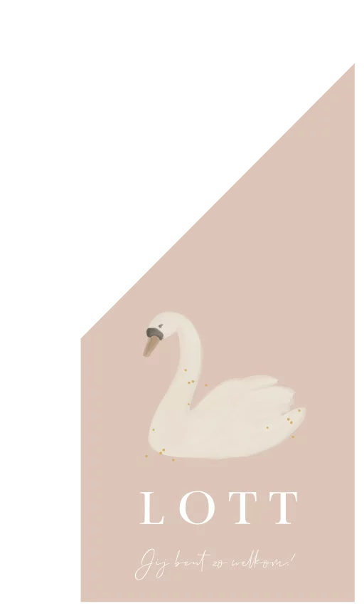 Geboortevlag om aan de hele buurt te laten zien dat jullie baby is geboren. De kleuren zijn unisex, maar de witte achtergrond kun je aanpassen in andere kleuren. Ook de zwaan en de tekst kun je aanpassen naar wens. Passend bij het kaartje Lott.