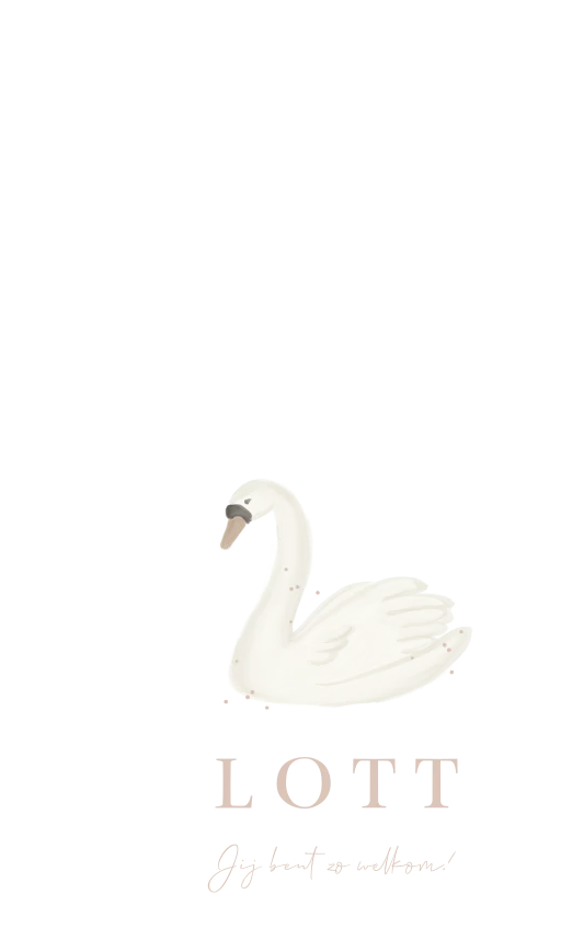 Geboortevlag om aan de hele buurt te laten zien dat jullie baby is geboren. De kleuren zijn unisex, maar de witte achtergrond kun je aanpassen in andere kleuren. Ook de zwaan en de tekst kun je aanpassen naar wens. Passend bij het kaartje Lott.