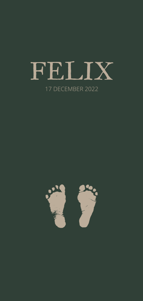 Geboorte-rouwkaartje met voetafdrukjes voor een jongen op donkergroen