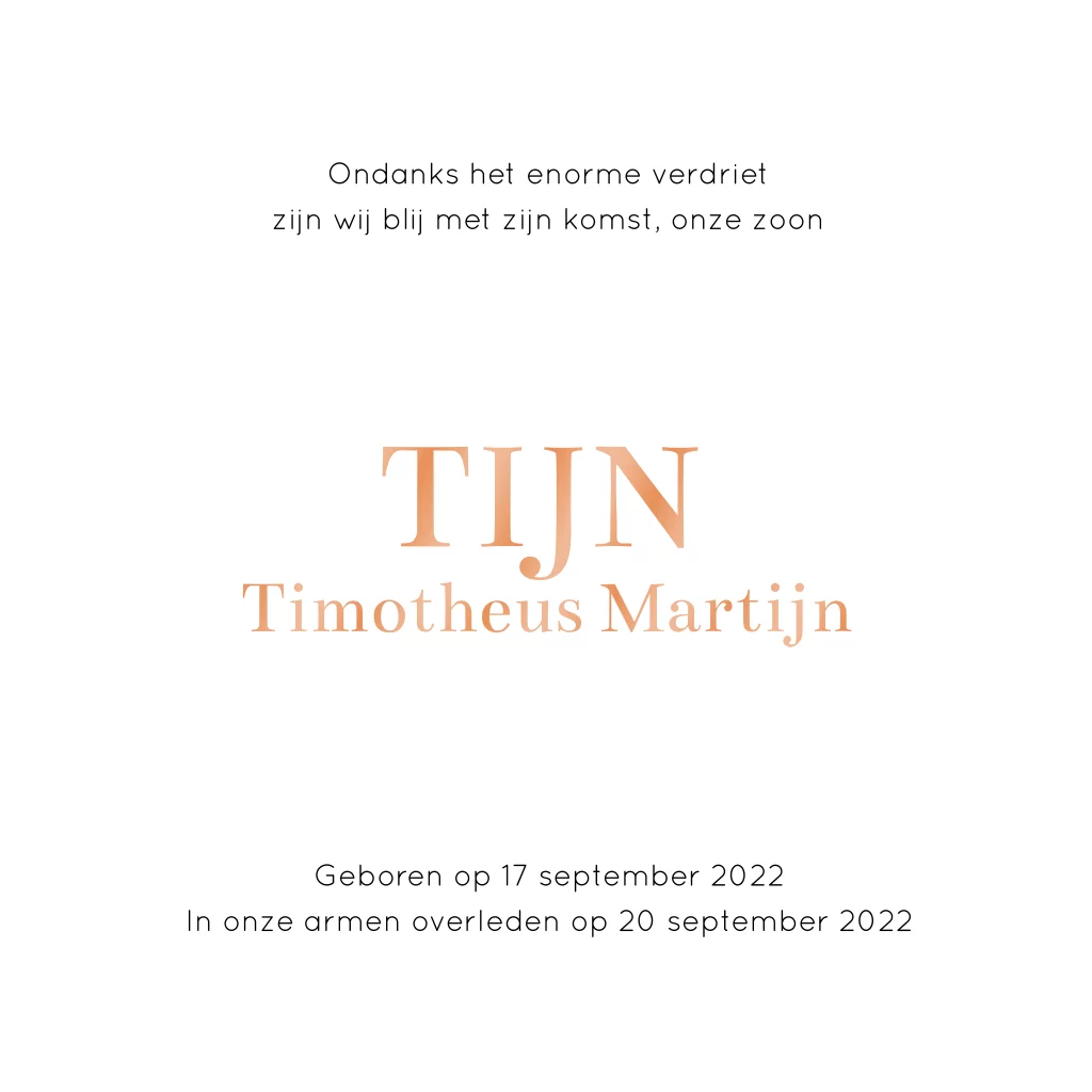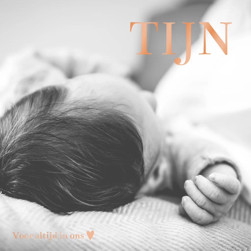 Dubbele fotokaart met koperfolie voor bij een overlijden van een baby