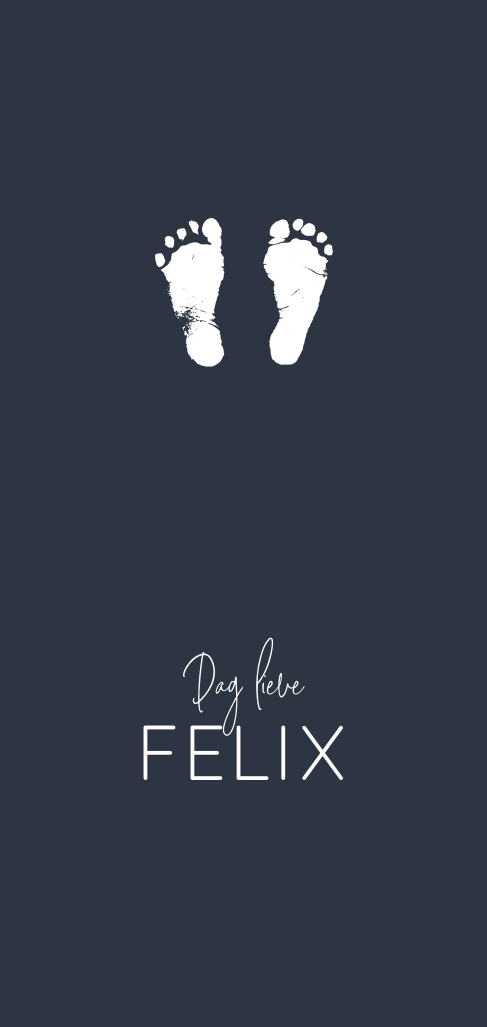 De voetafdrukjes van een stilgeboren kindje zijn enorm kostbaar. Hoe mooi is het dan ze af te laten drukken op jullie kaartje in goudfolie! Stuur ons een scherpe afbeelding van de voetafdrukjes, samen met de lengte van de afdruk in mm en het gewenste kaartformaat. Dan zorgen wij ervoor dat ze in werkelijke grootte op jullie kaartje komen te staan!
