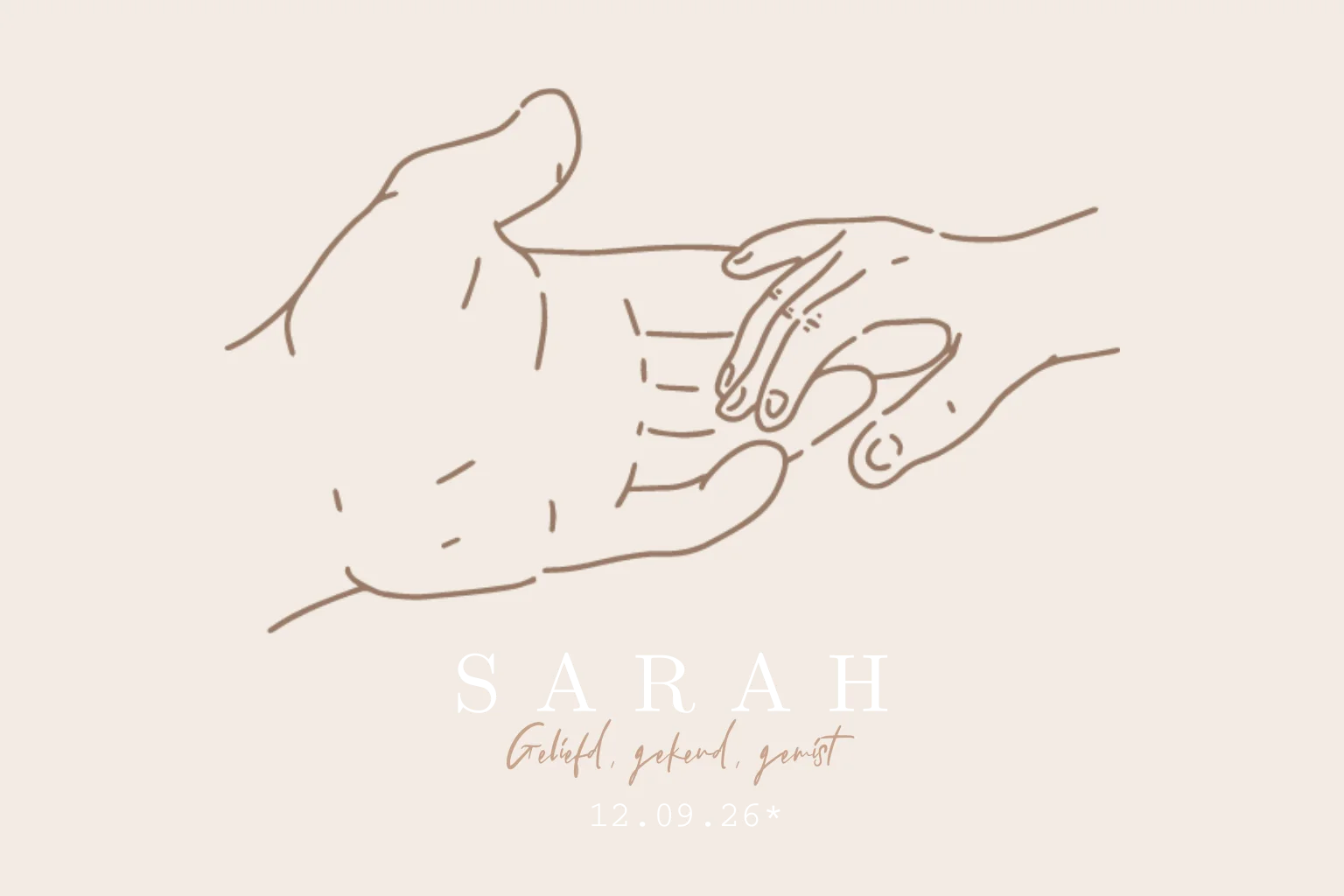 Een lief christelijke baby rouwkaartje voor een stil geboren kindje. De handen staan symbool voor Gods Vaderhand en de hand van het kind.