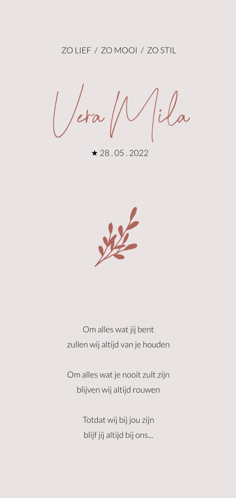 Baby-rouwkaartje met zandkleurige achtergrond en rood takje - meisje