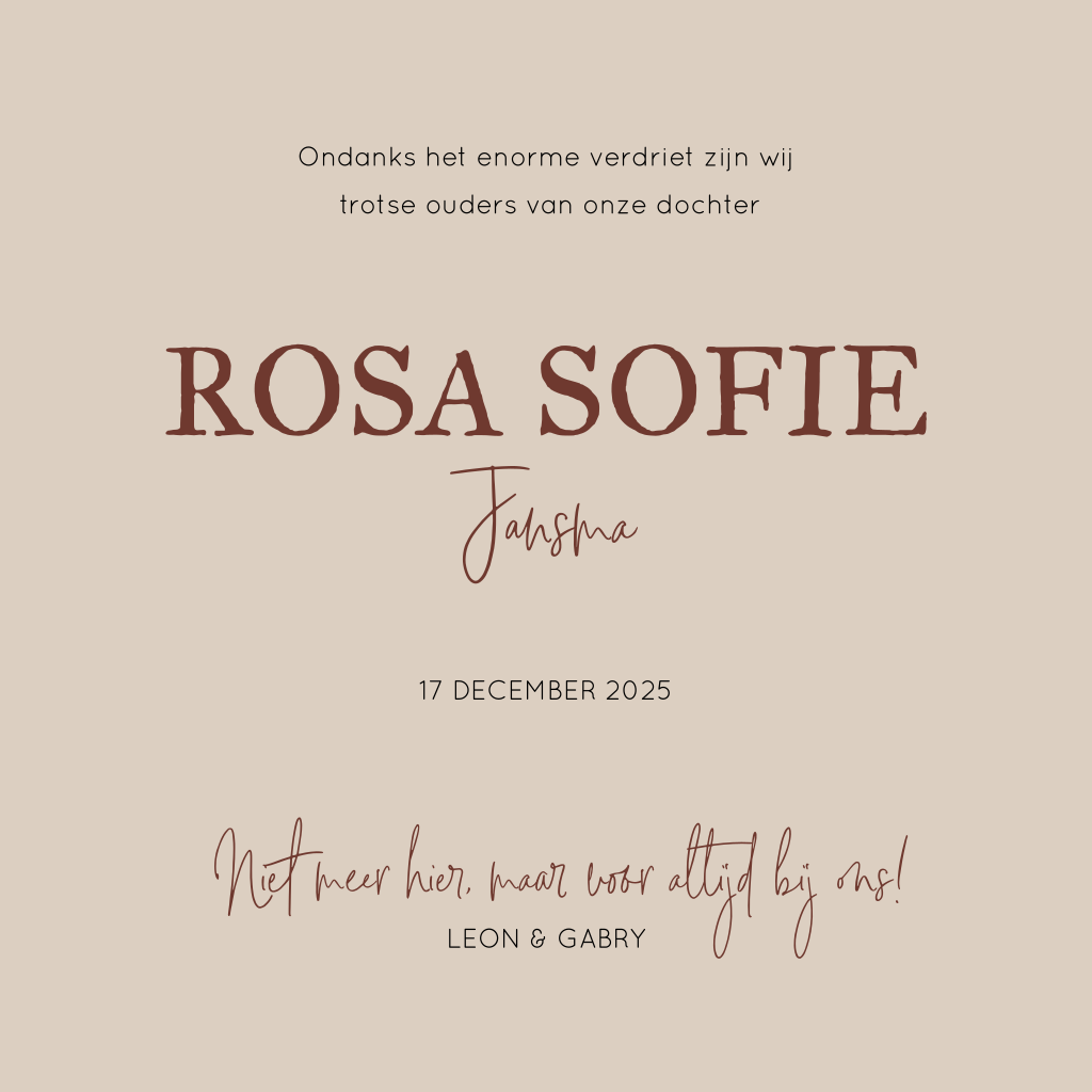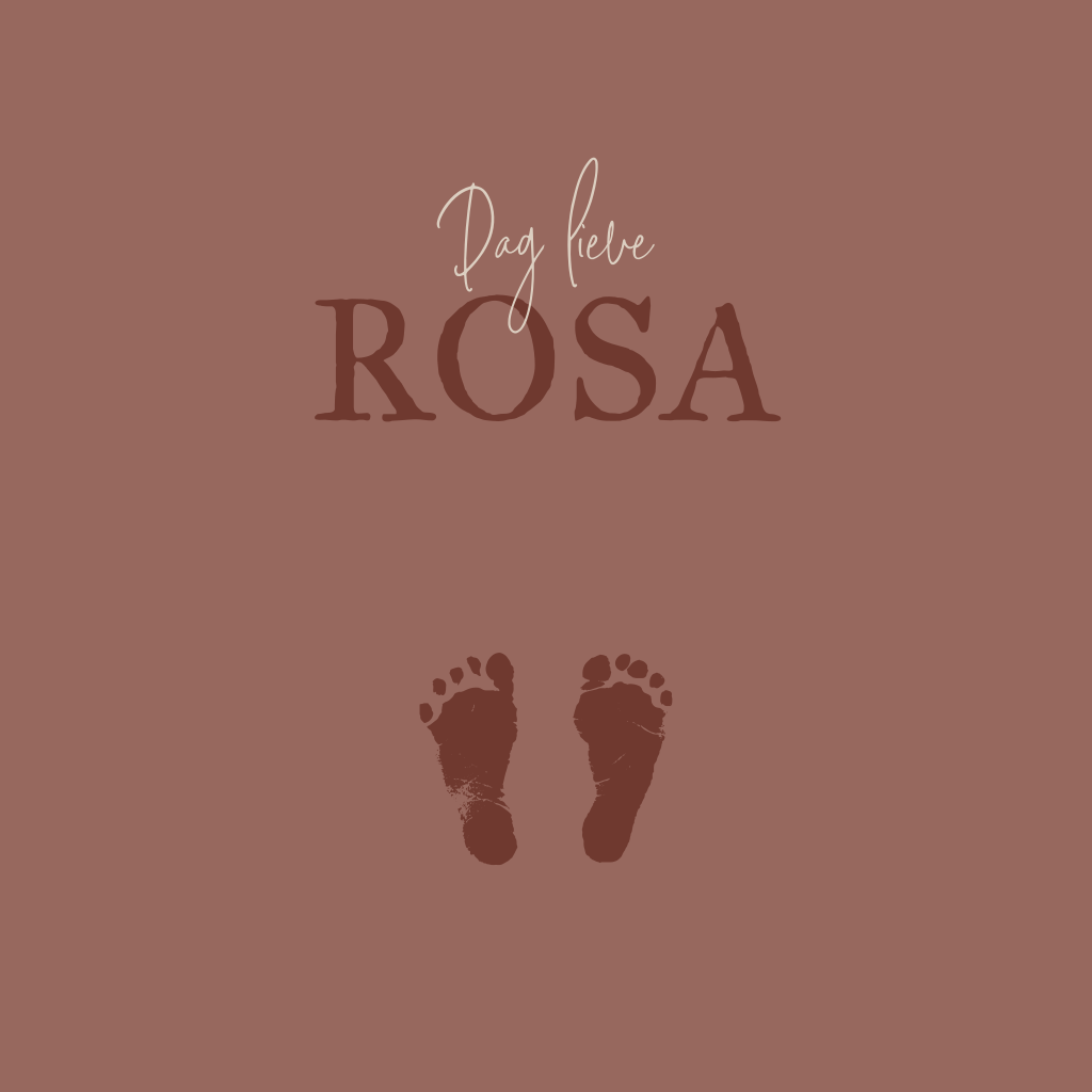 Tweeluik baby-rouwkaartje met voetafdrukjes voor een meisje roestkleur