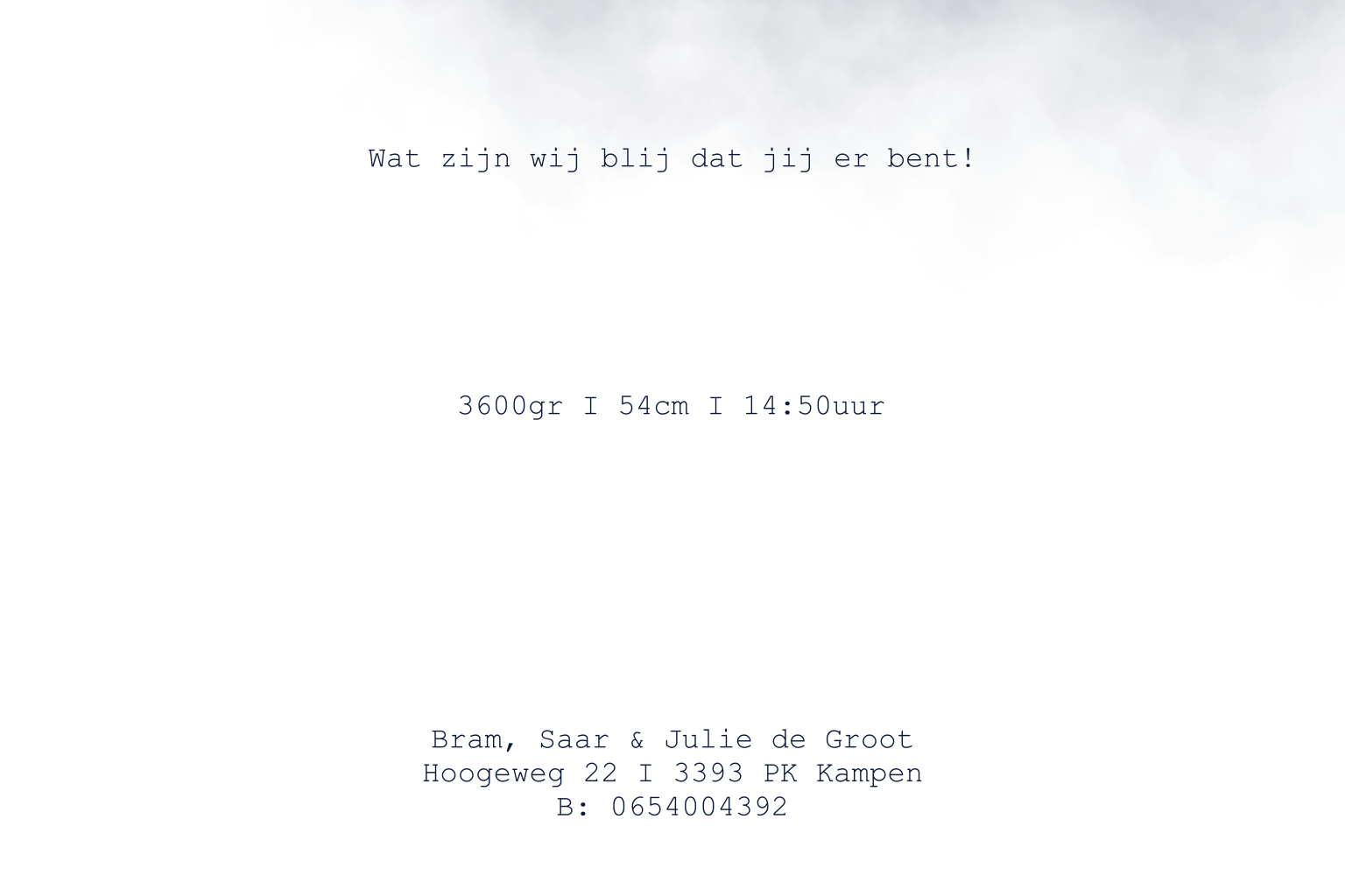 Dit stoere minimalistische geboortekaartje voor een jongen met donkerblauwe achtergrond kun je zelf aanpassen naar wens.