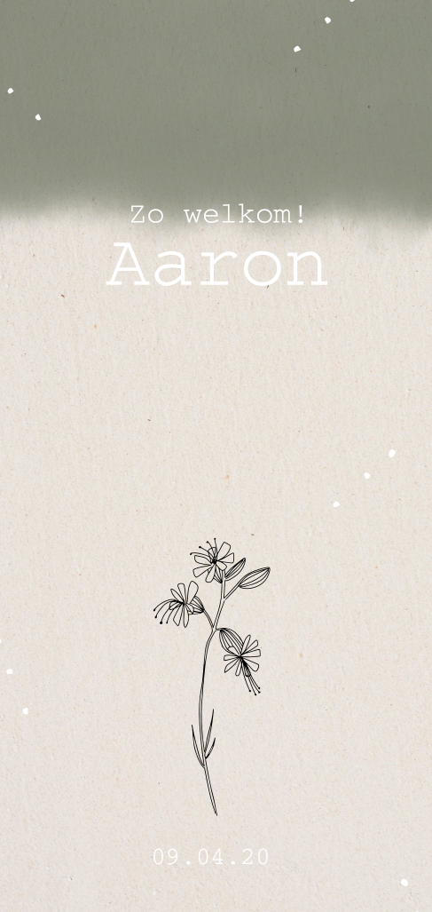 Stoer geboortekaartje voor een jongen met botanische lijntekening van bloemen en mooie groene kleur. Het goudfolie kun je omzetten naar zilverfolie of koperfolie.