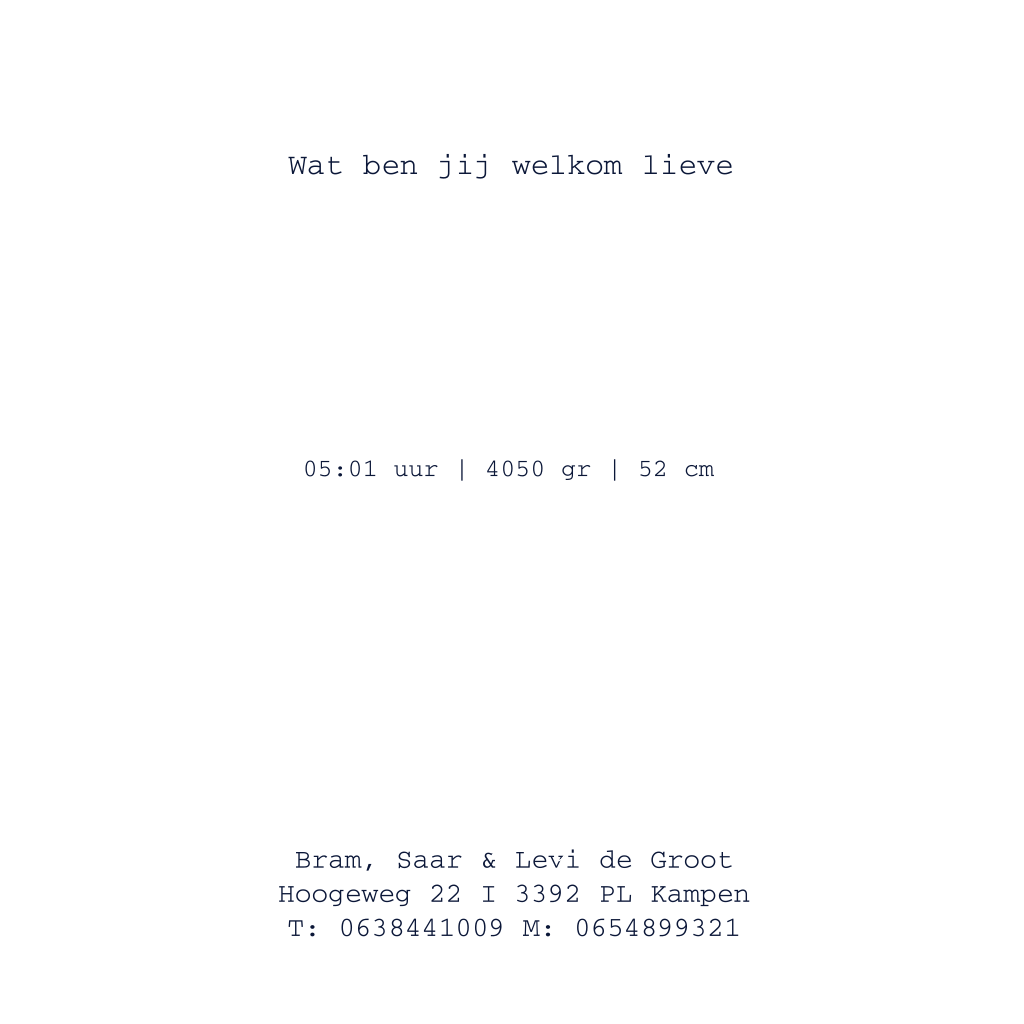 Dit geboortekaartje voor een jongen geef je een extra unieke uitstraling met de goudfolie letters. Je kunt dit ook met koperfolie of zilverfolie doen. Ook de blauwe wolk kun je elke willekeurige kleur geven.
