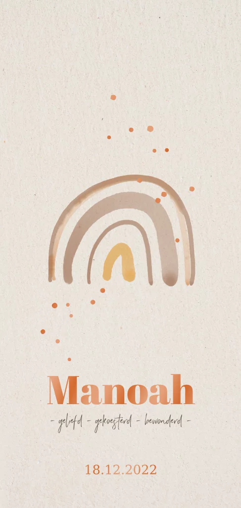 Dit geboortekaartje kan voor zowel een jongen als een meisje. Een unisex kaartje dus. Met aardetinten en een kraftlook achtergrond die heel mooi uit komt op Linnen papier. De stipjes en teksten in glanzende UV spotlak in koper kleur geven dit kaartje een extra mooie uitstraling. Dit kaartje is ontworpen voor Manoah van @rebecca.bout