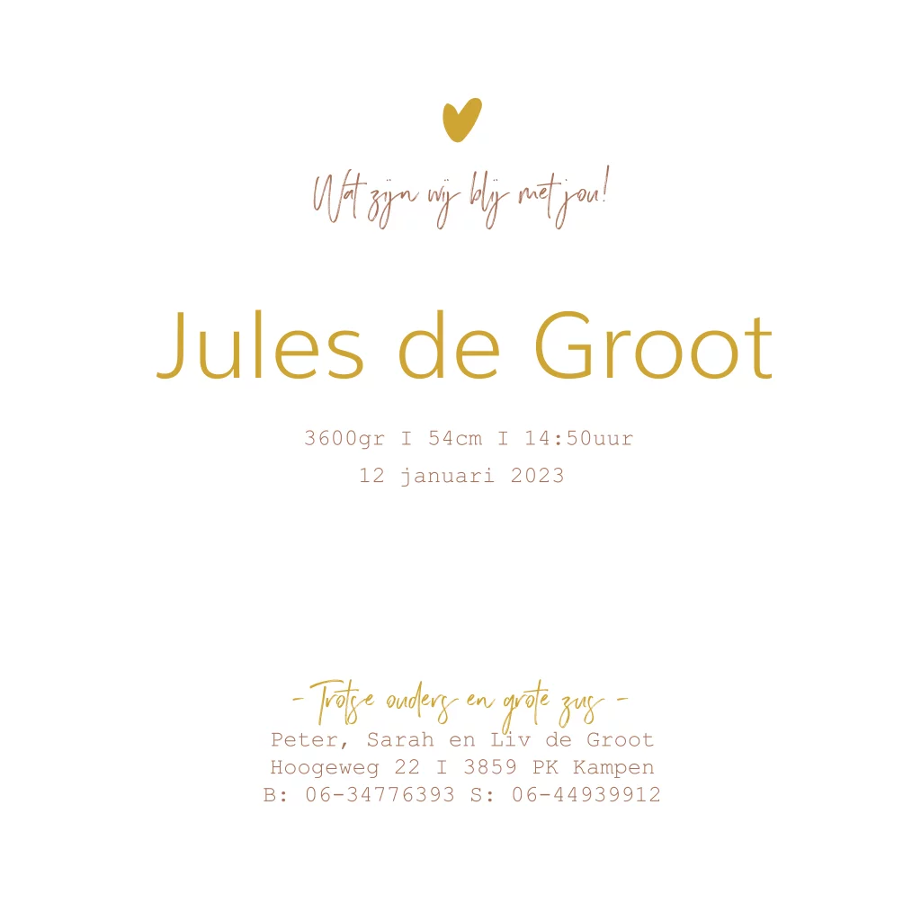 Geboortekaartje minimalistisch voor een jongen of meisje met folie
