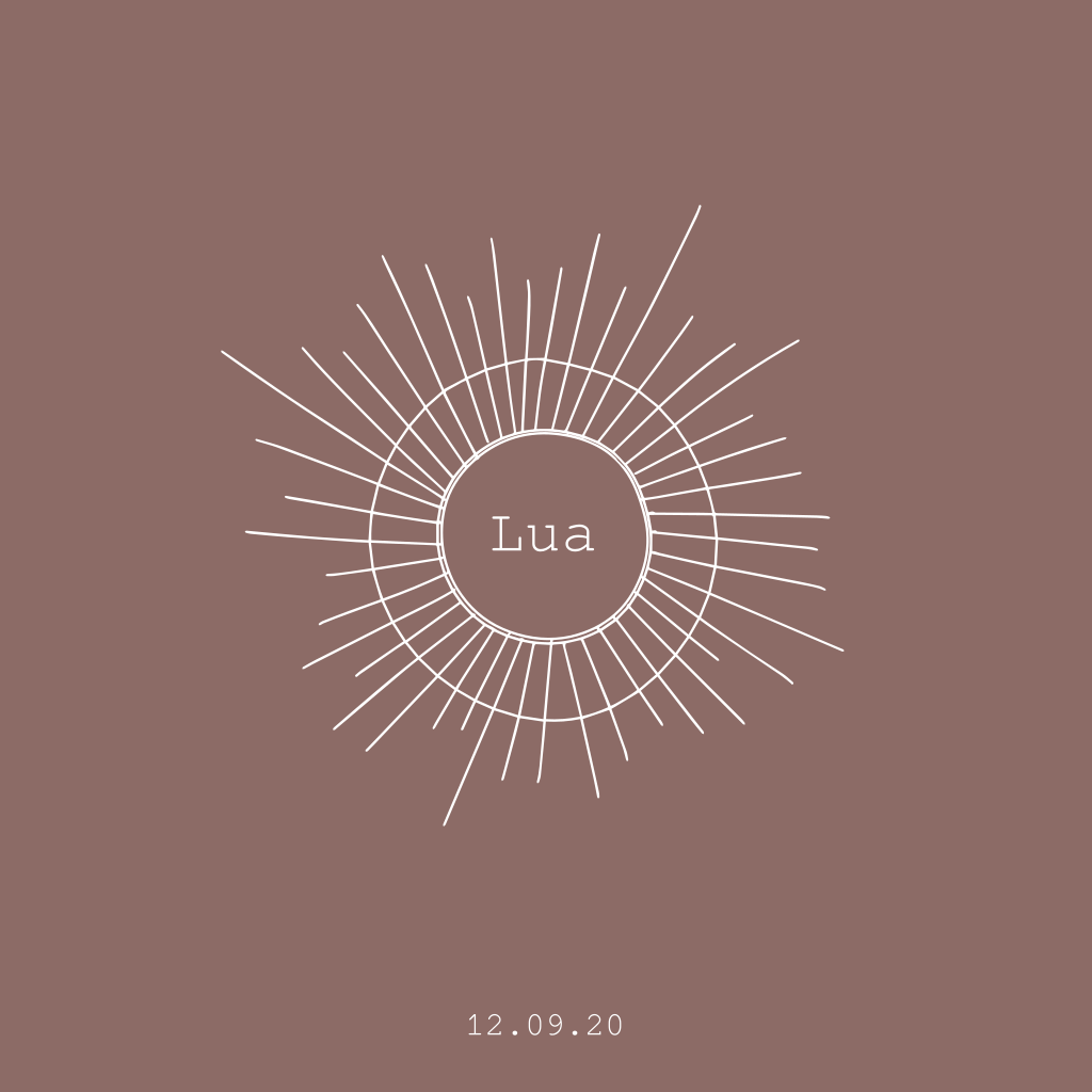 Bohemian geboortekaartje voor een meisje met zon van goudfolie