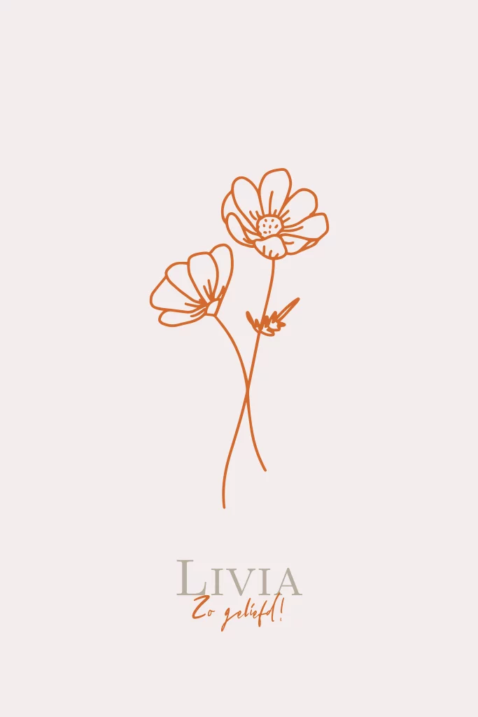 Een geboortekaartje voor de geboortemaand van jullie kindje. Deze bloem staat voor de maand oktober: cosmos De kleuren kun je zelf aanpassen naar wens en smaak net zoals het lettertype en de achtergrond kleur.
