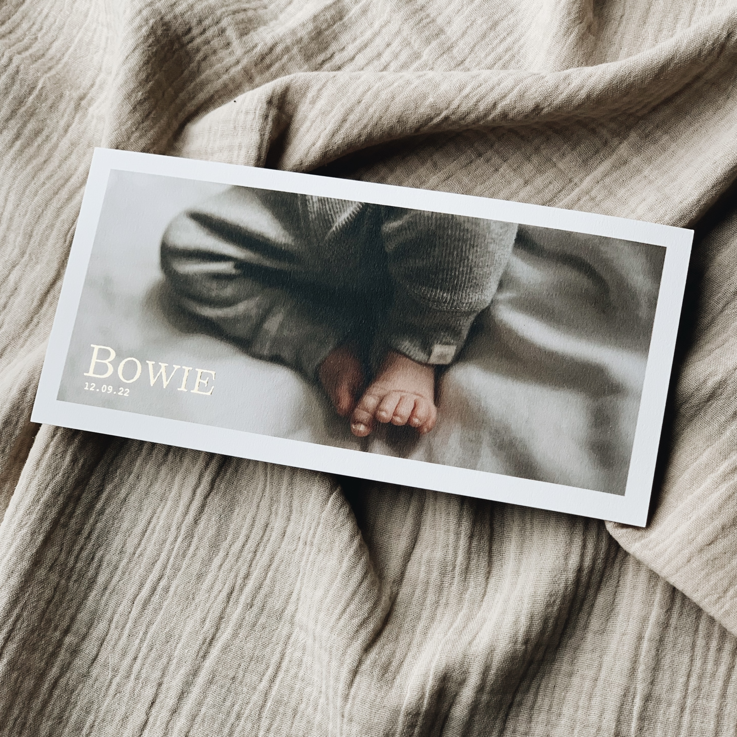 Geboortekaartje meisje jongen met goudfolie en nweborn foto