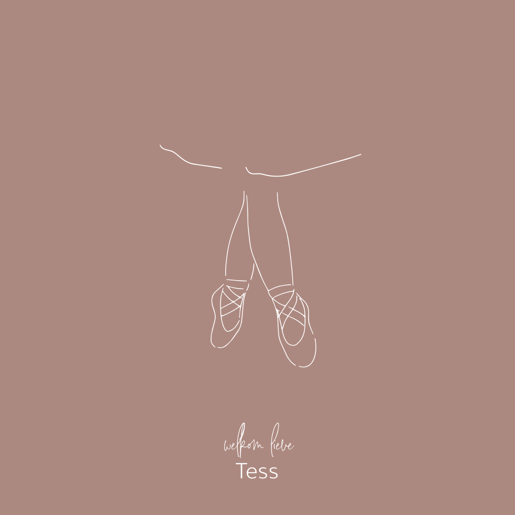 Een mooi en lief minimalistisch geboortekaartje met roestbruin roze achtergrond. De ballerina danseres lijntekening van de spitzen in goudfolie geeft het een prachtige uitstraling. De kleuren kun je zelf aanpassen naar wens net zoals het lettertype.