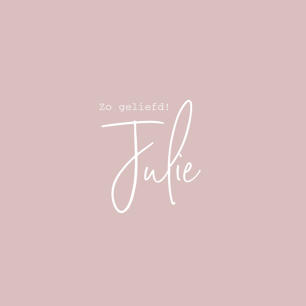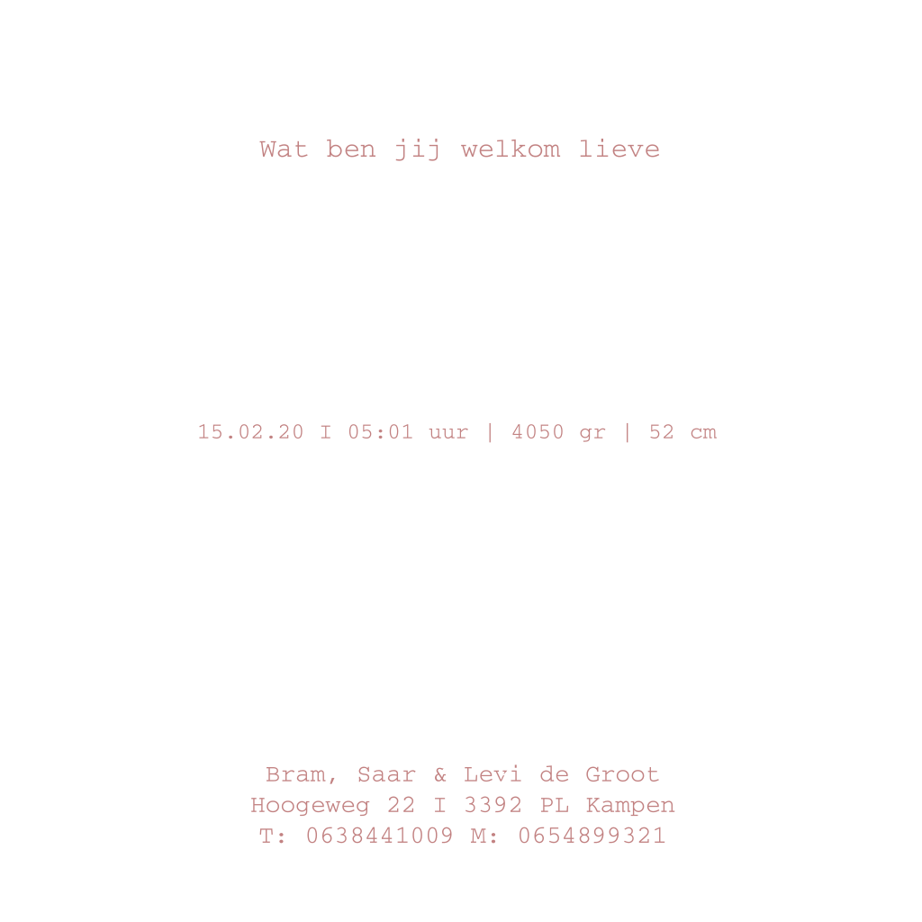 Dit geboortekaartje voor een meisje met mooie oudroze achtergrond en in een goudfolie de naam voorop is juist in eenvoud prachtig. De newborn foto aan de binnenkant met grote zus erop en foliedruk tekst geeft het kaartje net wat extra.