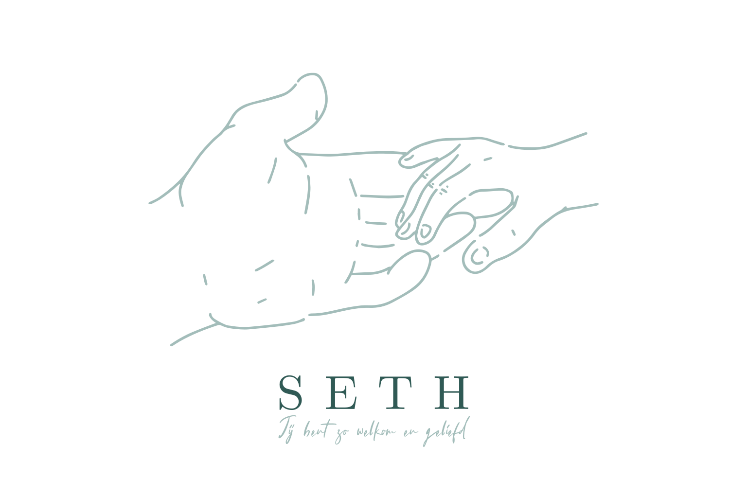 Een christelijk geboortekaartje met de hand van de baby en het beeld van Gods Vaderhand. De lijntekening van de handen kun je zelf aanpassen in kleur net zoals de tekst.