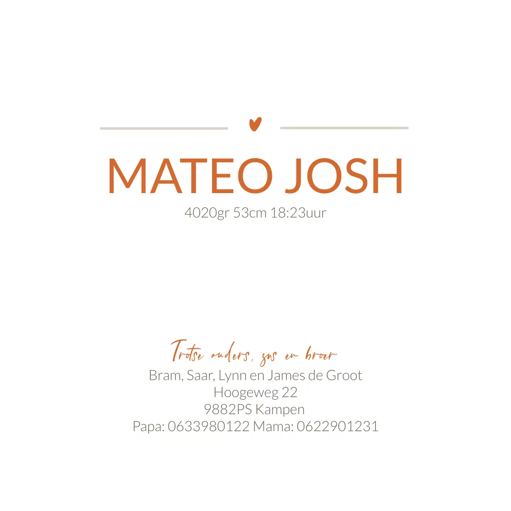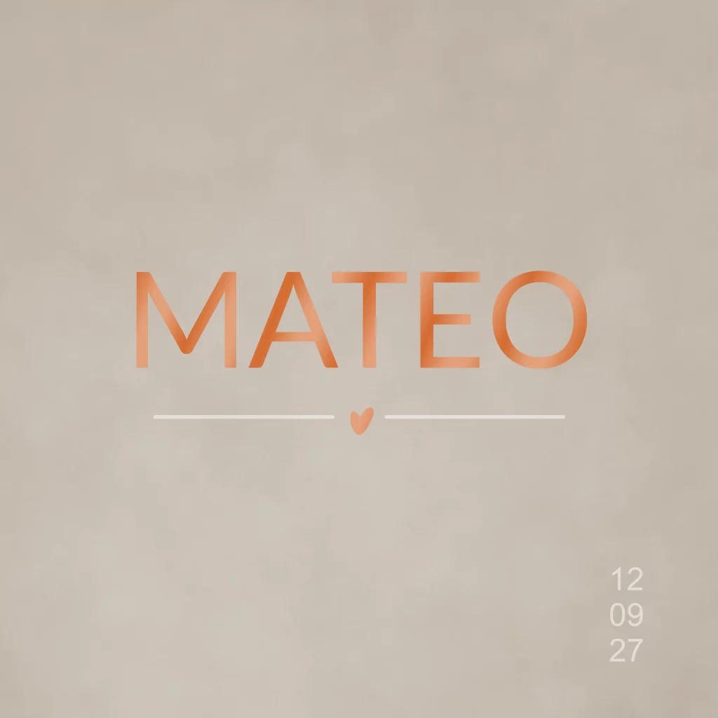Een stoer dubbelzijdig geboortekaartje voor een jongen. Minimalistisch met beige velvet look.