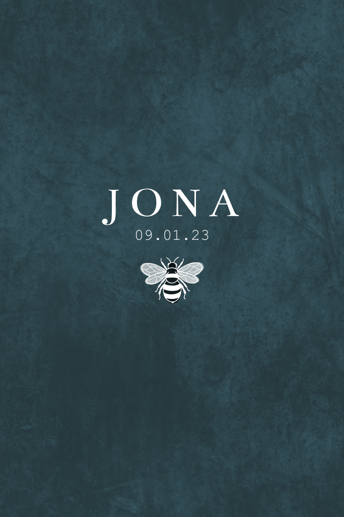 Een lief maar ook stoer geboortekaartje voor een jongen. Met lief bijtje maar de donkerblauw groene velvet look achtergrond geeft het een stoere uitstraling.