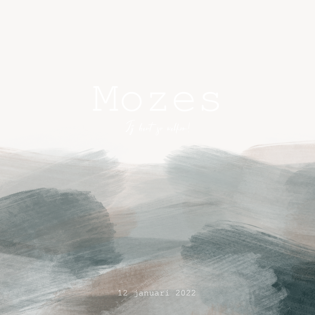 Dit geboortekaartje voor een jongen met stoere verfstrepen in bruine en donkerblauwe tinten kun je nog aanpassen naar wens. De naam Mozes staat nu in goudfolie maar kun je omzetten naar een andere folie kleur.