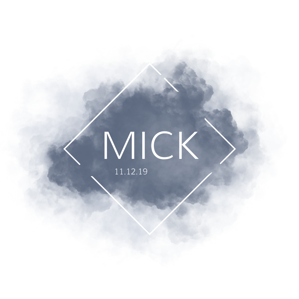 Geboortekaartje voor een jongen met goudfolie en donkerblauwe wolk