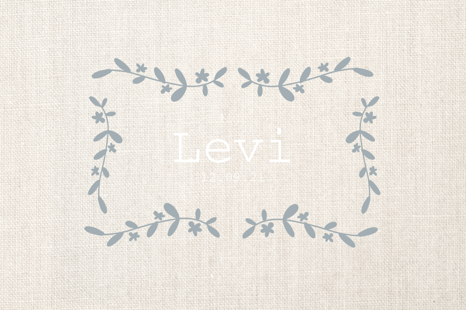 Geboortekaartje jongen lakfolie blauw en linnen achtergrond