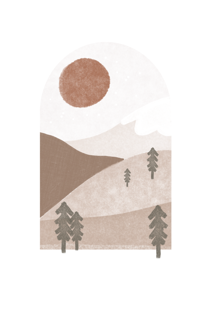 Dit geboortekaartje kan voor zowel een meisje als een jongen. Bergen in neutrale natuurtinten en groene denneboompjes. Opkomende zon en het goudfolie.