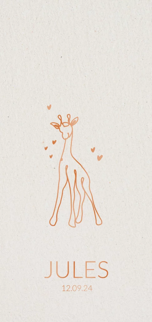 Geboortekaartje voor een jongen of meisje met giraffe koperfolie