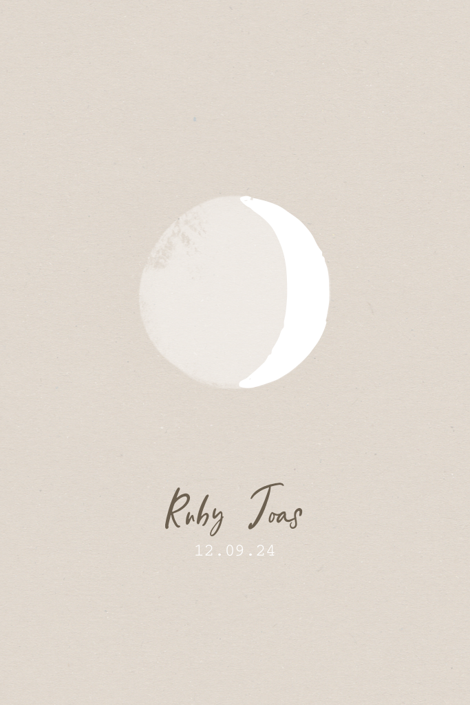 Geboortekaartje jongen meisje maan in foliedruk en beige tinten