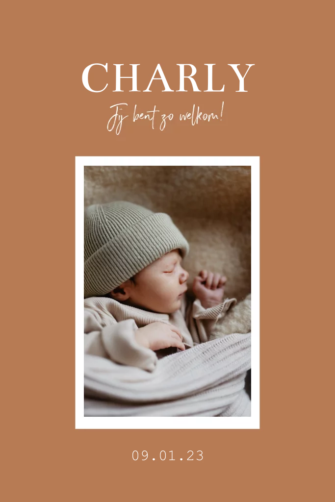 De roest oranje kleur en de ronde hoeken geeft het kaartje een klassieke uitstraling in combinatie met het goudfolie. En zo tof met een lieve newborn foto erop. Deze lieve foto is gemaakt door @thestorytellernl