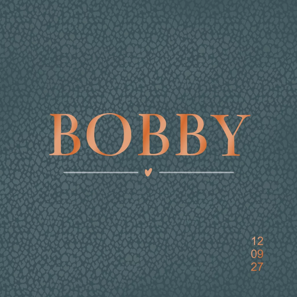 Geboortekaartje jongen met dierenprint blauw groen en koperfolie