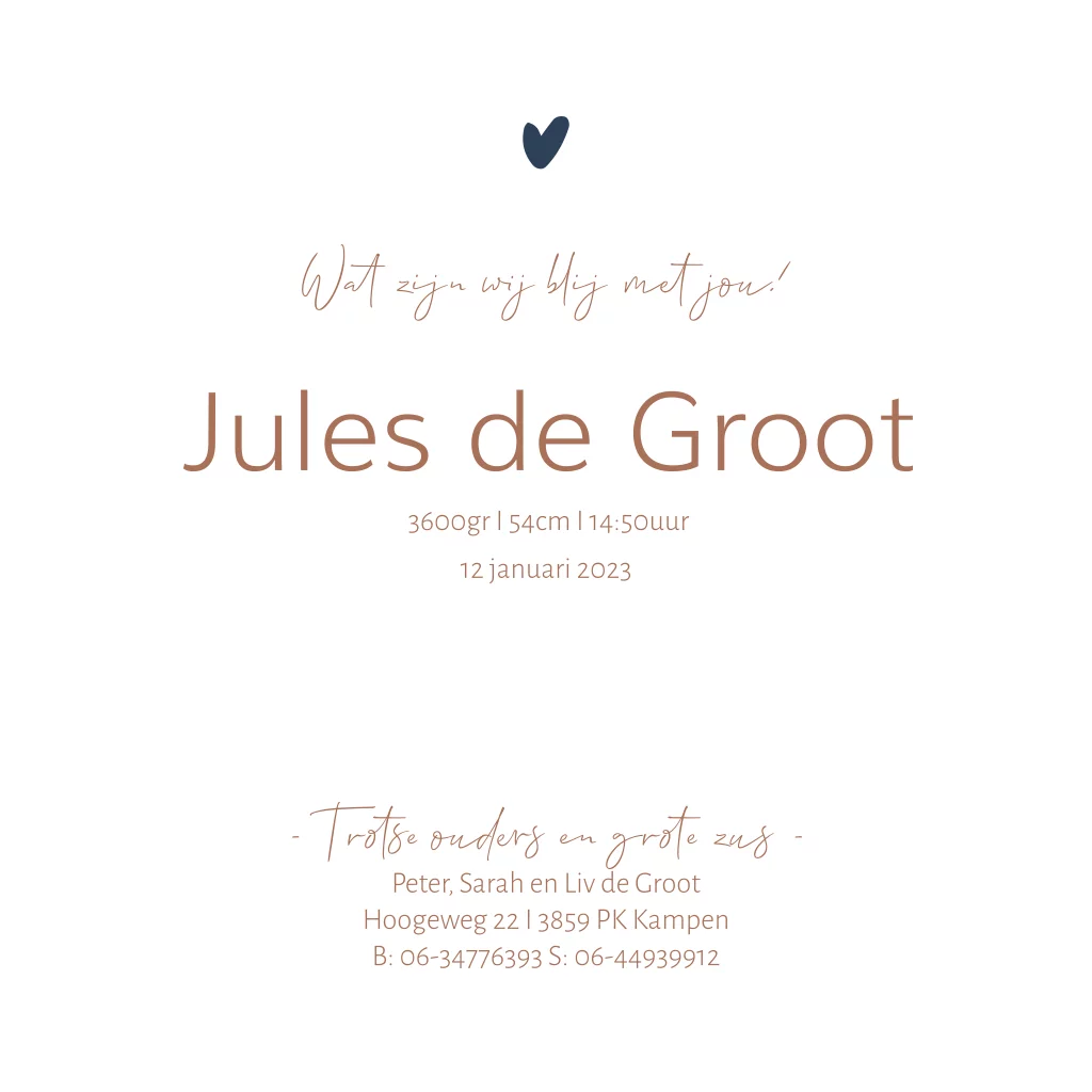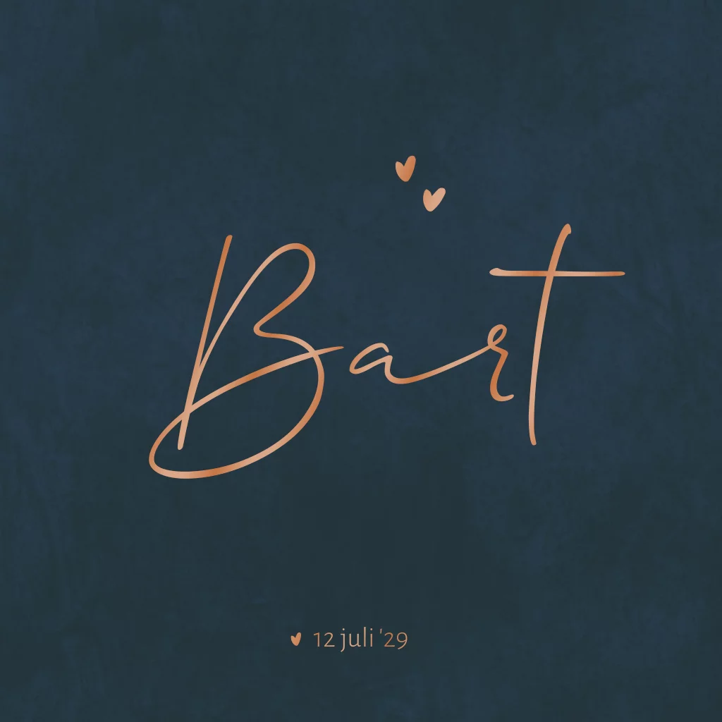 geboortekaartje jongen met donker blauwe velvetlook koperfolie