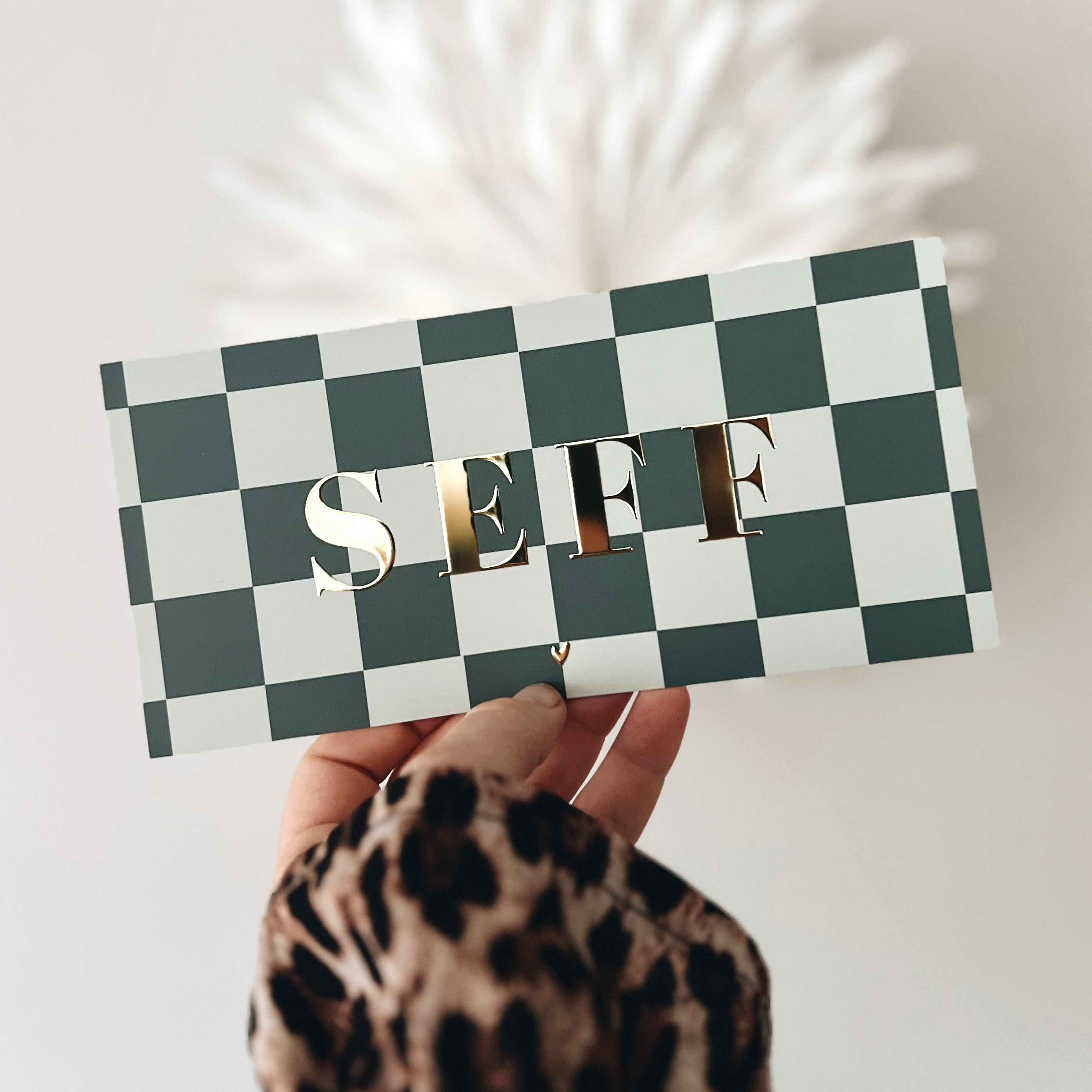 Dit stoere geboortekaartje met geruite groen blauwe blokjesprint en de naam groot in goudfolie voor op kun je helemaal aanpassen naar wens en smaak.