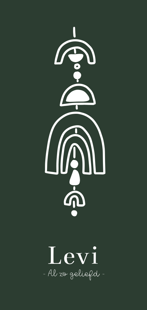 Dit geboortekaartje voor een jongen met wieghanger met regenboog en maan in folie en stoere donker groene achtergrond kun je zelf helemaal aanpassen naar wens.