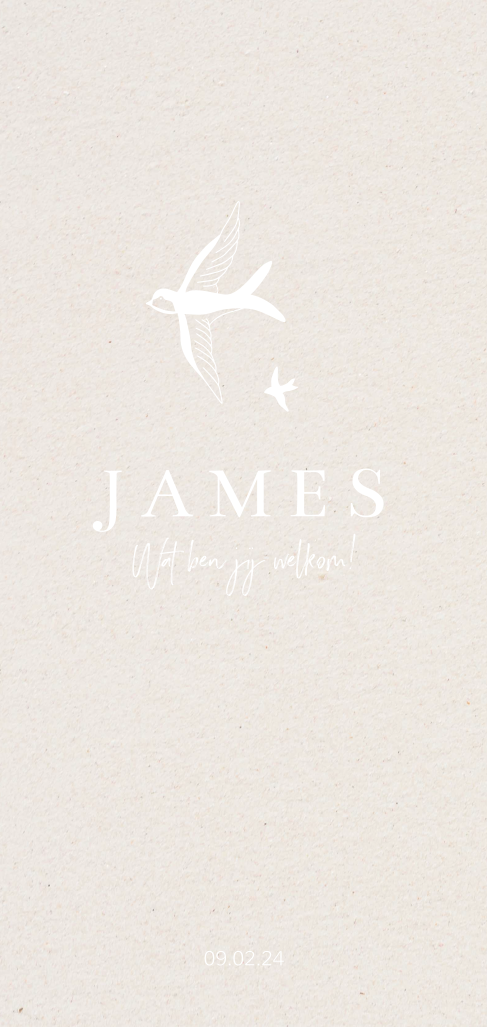 Een minimalistisch geboortekaartje voor een jongen of meisje met een zwaluw en haar jong in zwart folie. De folie kleur kun je aanpassen.