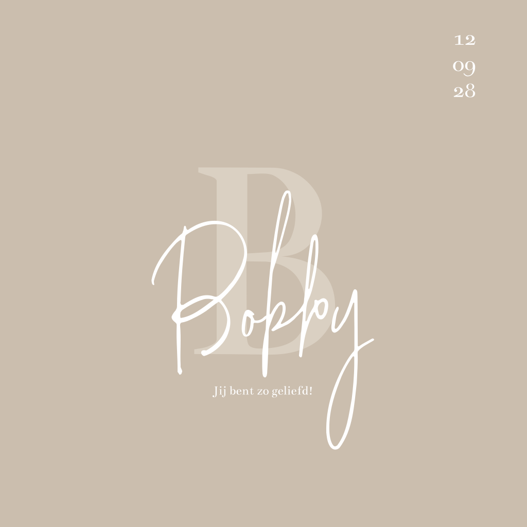 Geboortekaartje meisje jongen letter naam goudfolie beige