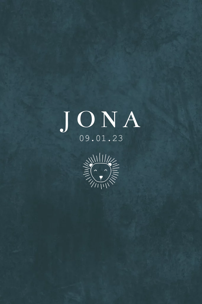 Een stoer geboortekaartje voor een jongen met velours look en leeuwtje in foliedruk. Je kunt dit kaartje helemaal aanpassen naar wens.