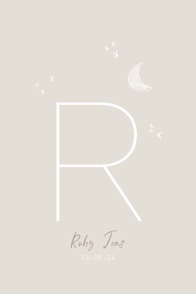 Geboortekaartje unisex met goudfolie letter en maan en sterren