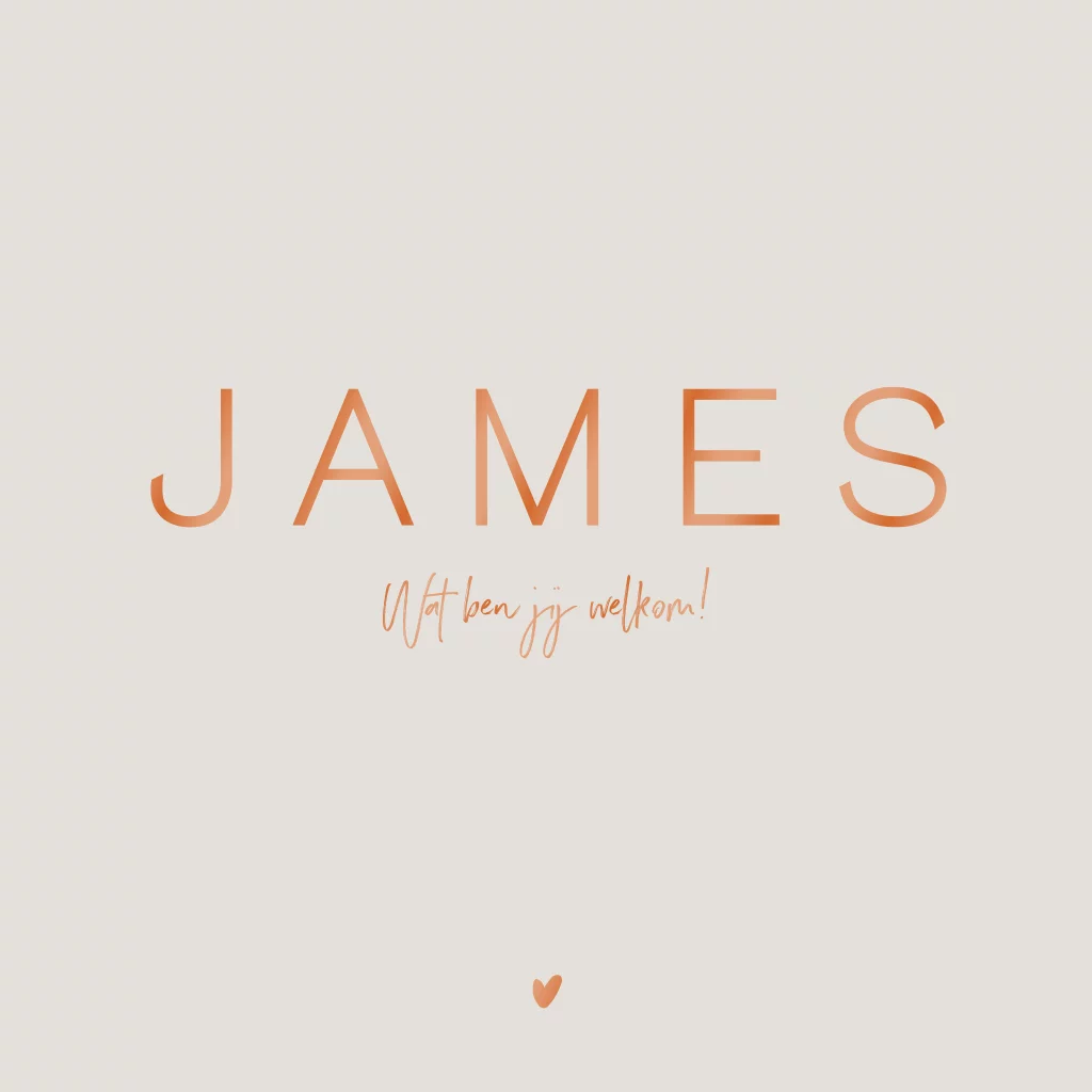 Minimalistisch unisex geboortekaartje met aardetinten en koperfolie