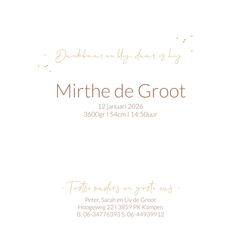 Geboortekaartje meisje Folie enkelzijdig I Keuze uit 5 kleuren Foliedruk