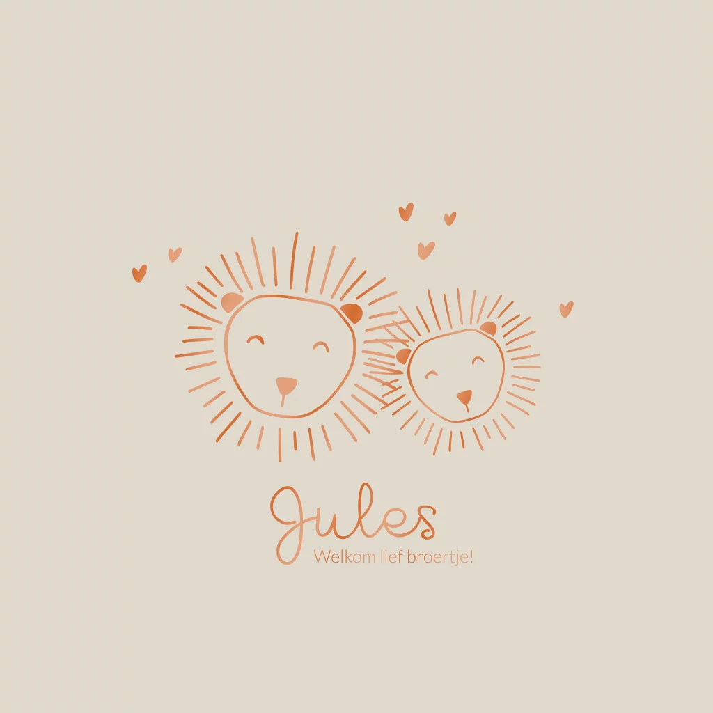 Geboortekaartje broertje zusje beige met leeuwenwelp en foliedruk