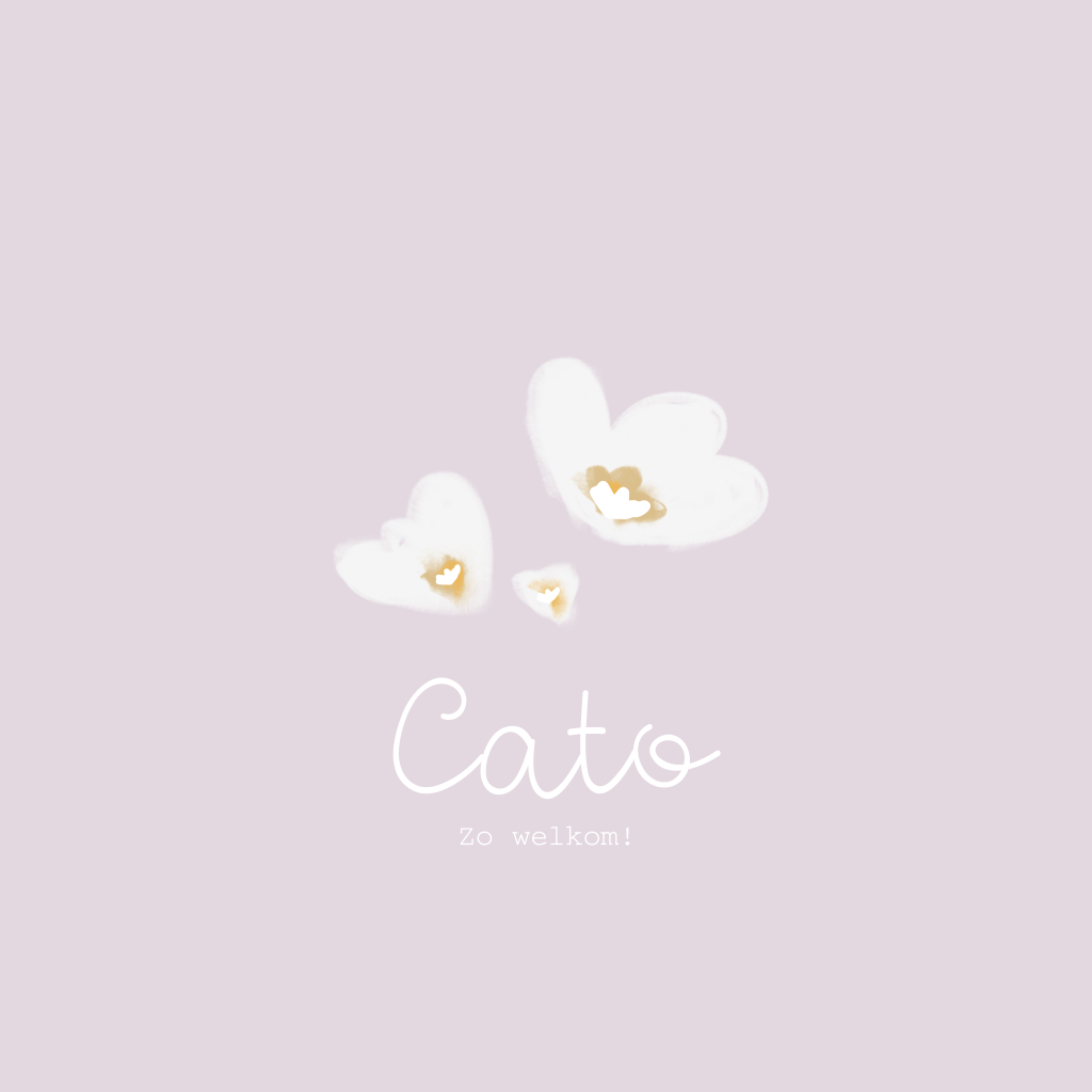 Een lief geboortekaartje voor een meisje met paarse purple achtergrond en wit bloemetje met goudfolie. De kleuren kun je allemaal aanpassen naar wens.
