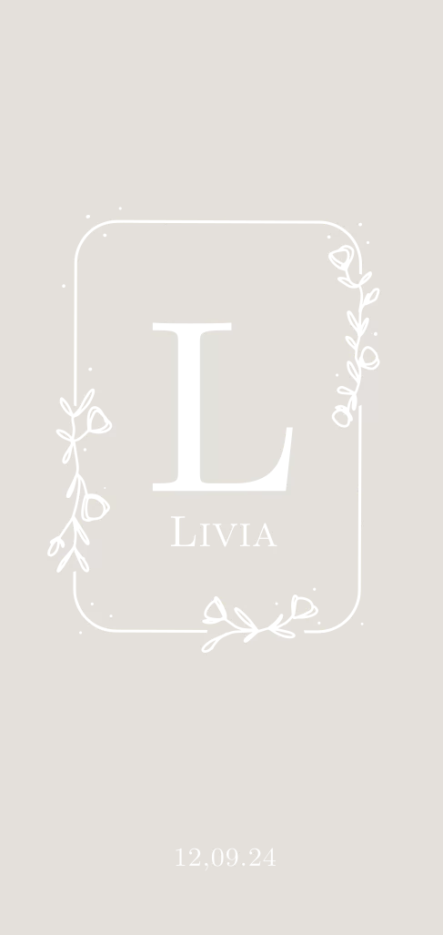 Dit lieve geboortekaartje voor een meisje in natuurtinten met rose folie kun je zelf helemaal aanpassen naar wens. De folie kleur van de letter en de bloemen krans kun je omzetten naar goudfolie, koperfolie, zilver folie of zwarte lakfolie. Ook de beige achtergrond kun je aanpassen naar wens.