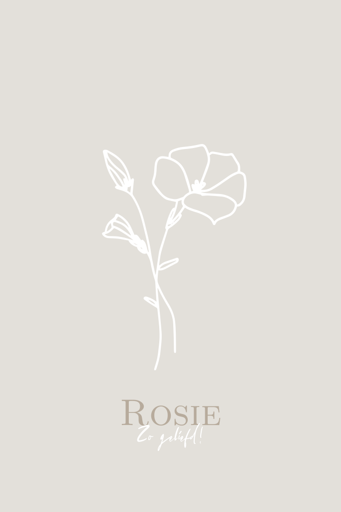 Geboortekaartje met mooie geboortebloem voor de maand september. Je kunt het hele kaartje aanpassen naar wens voor jullie meisje. Rosie
