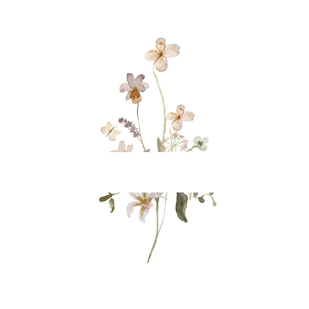 Een lief dubbel geboortekaartje voor een meisje met geschilderde watercolour bloemen in roze bruine tinten.