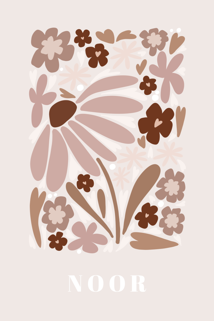 Een lief geboortekaartje voor een meisje met rosefolie en roze rode bloemen print. Noor